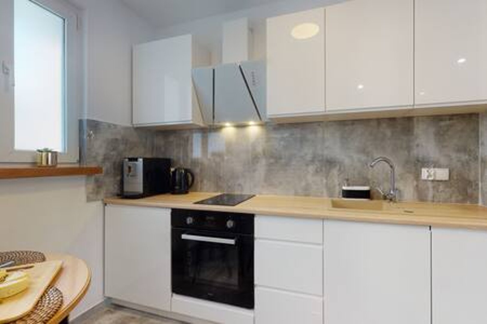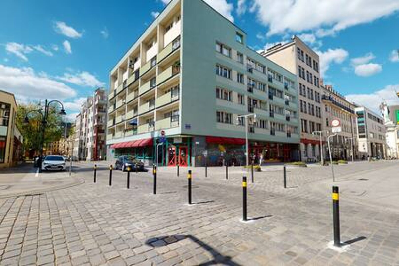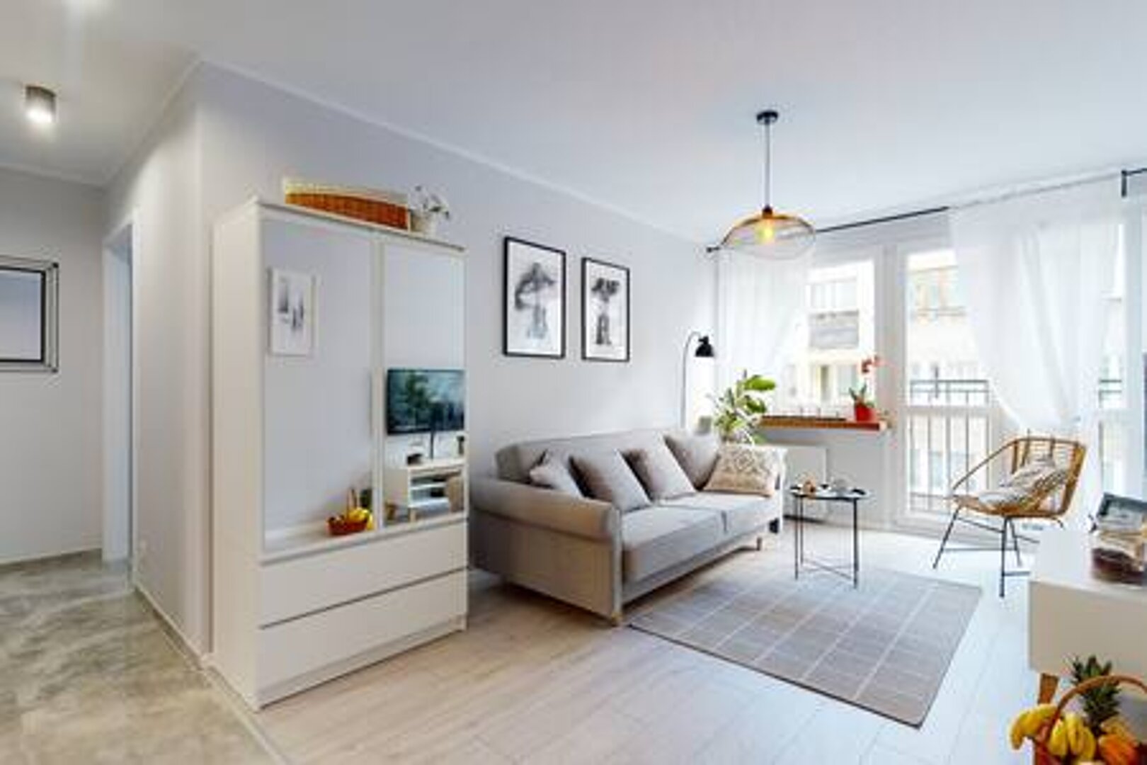 Sienkiewicza Central – nowoczesny apartament z balkonem Przestrzeń dla dwojga w doskonałej lokalizacji: 1. piętro, duże łóżko, szybki Internet i restauracje pod ręką.