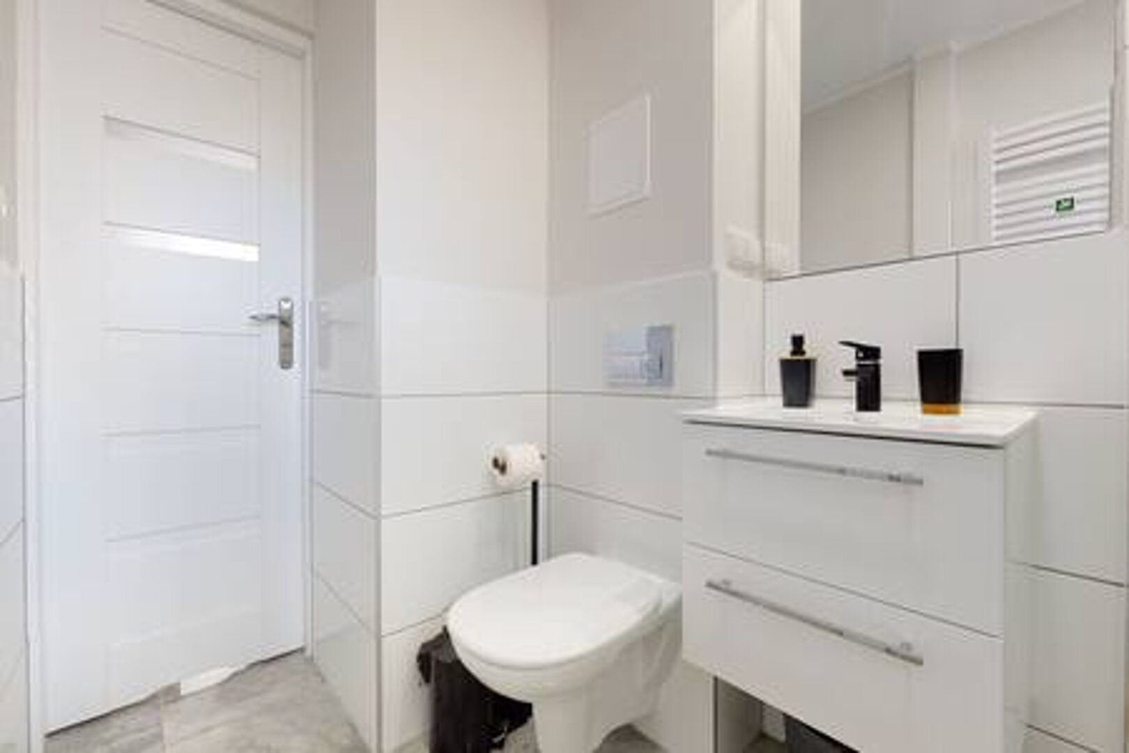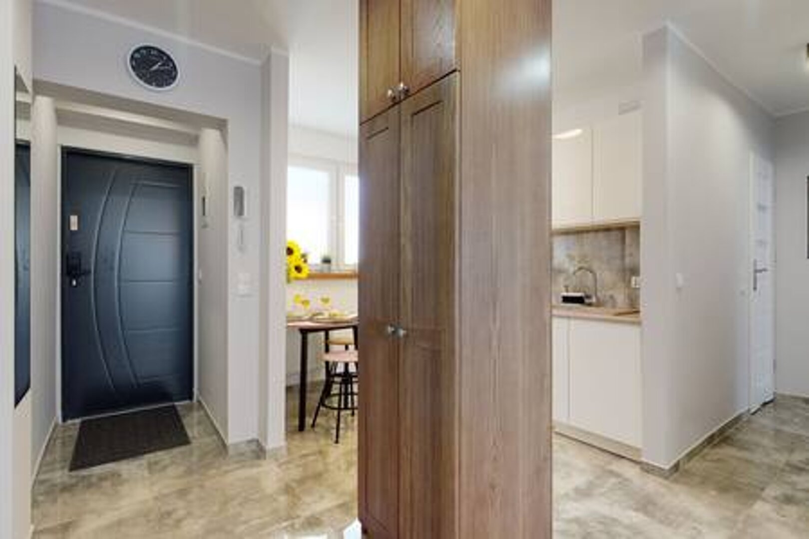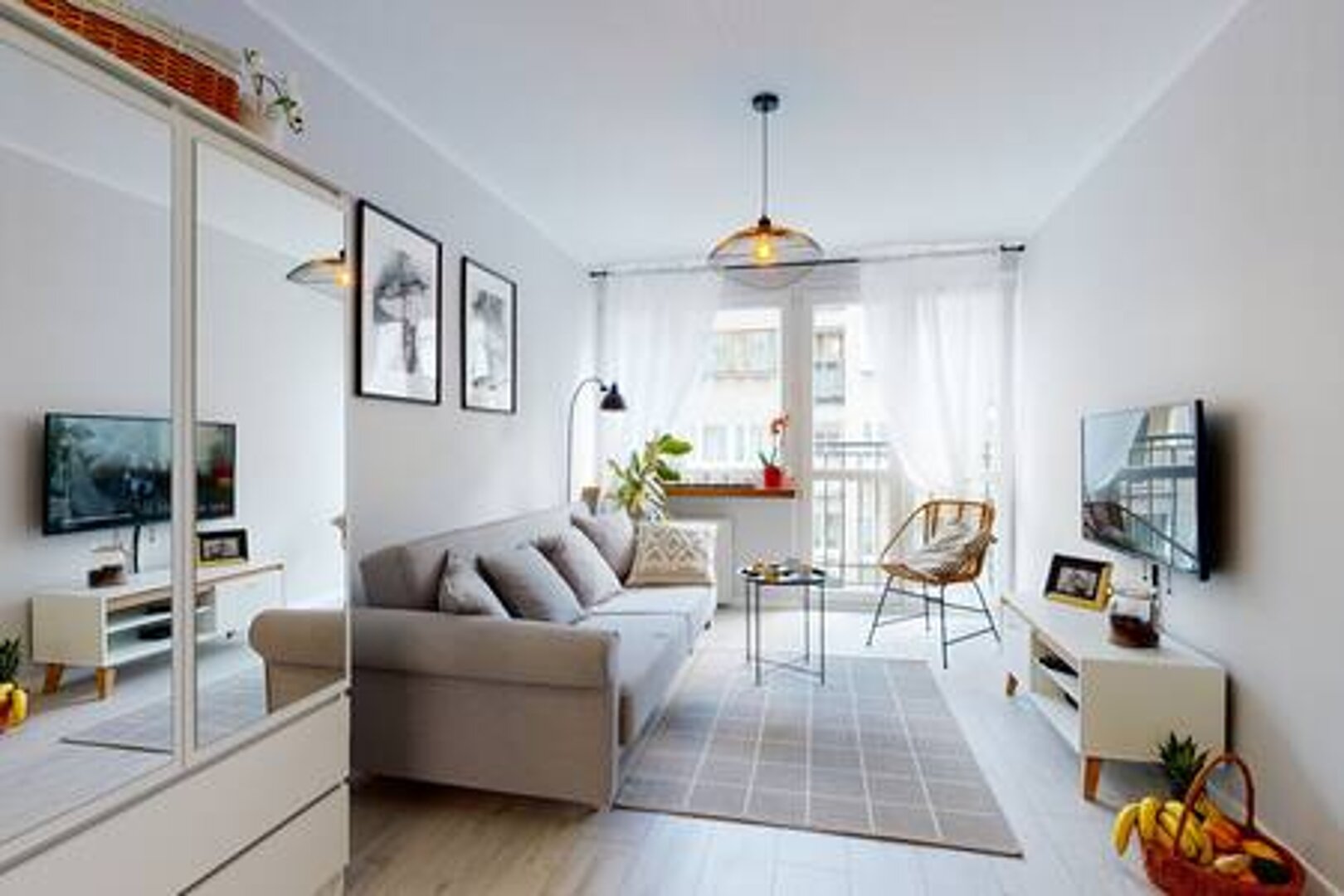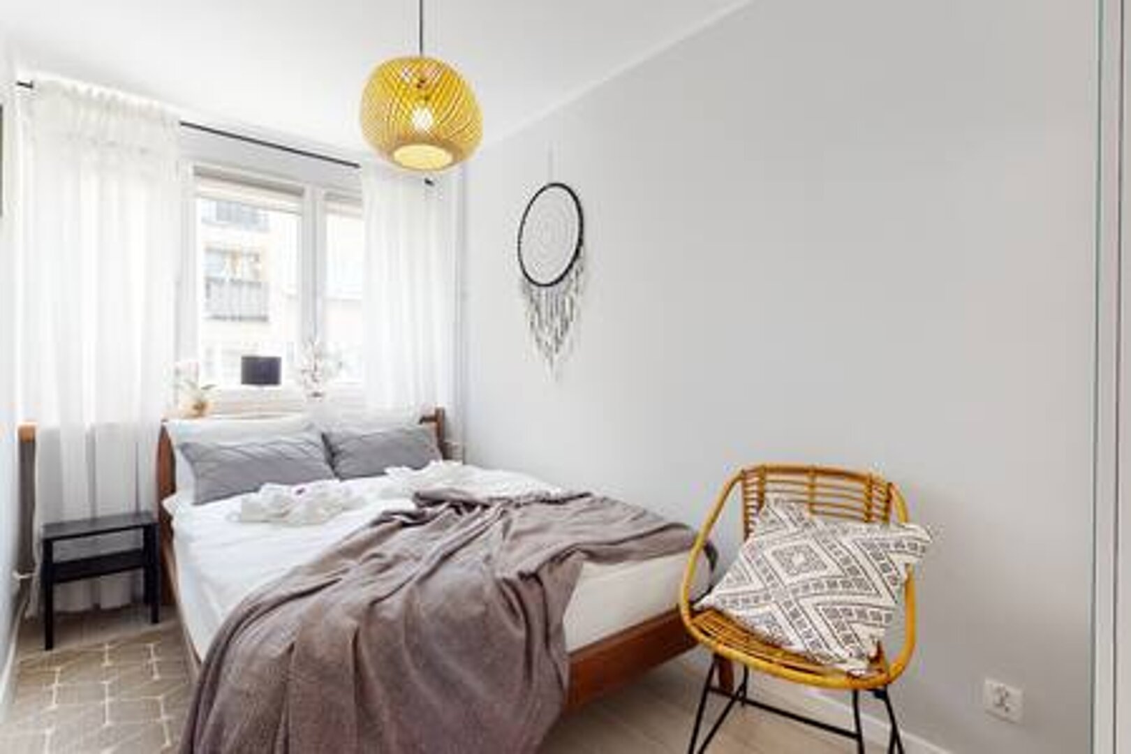 Sienkiewicza Central – nowoczesny apartament z balkonem Przestrzeń dla dwojga w doskonałej lokalizacji: 1. piętro, duże łóżko, szybki Internet i restauracje pod ręką.